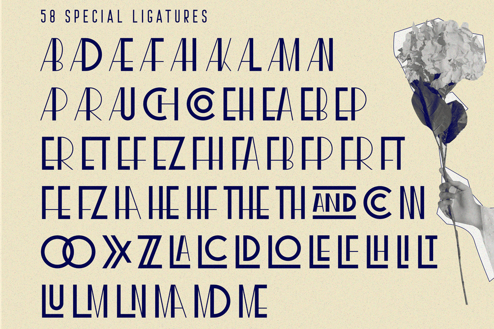 COXXON Font is an art deco inspired sans serif typeface that is both elegant and minimal at the same time. This chic font takes the decoration out of deco but keeps those vintage curves. A perfect mix of new and old. It combines light and heavy stroke widths with simple geometric forms to create a stylish appearance reminiscent of the 1920's design era. This versatile font can be used for word-mark logos, mastheads, pull quotes & monograms. Plus 8 bonus feminine logos thrown in!
