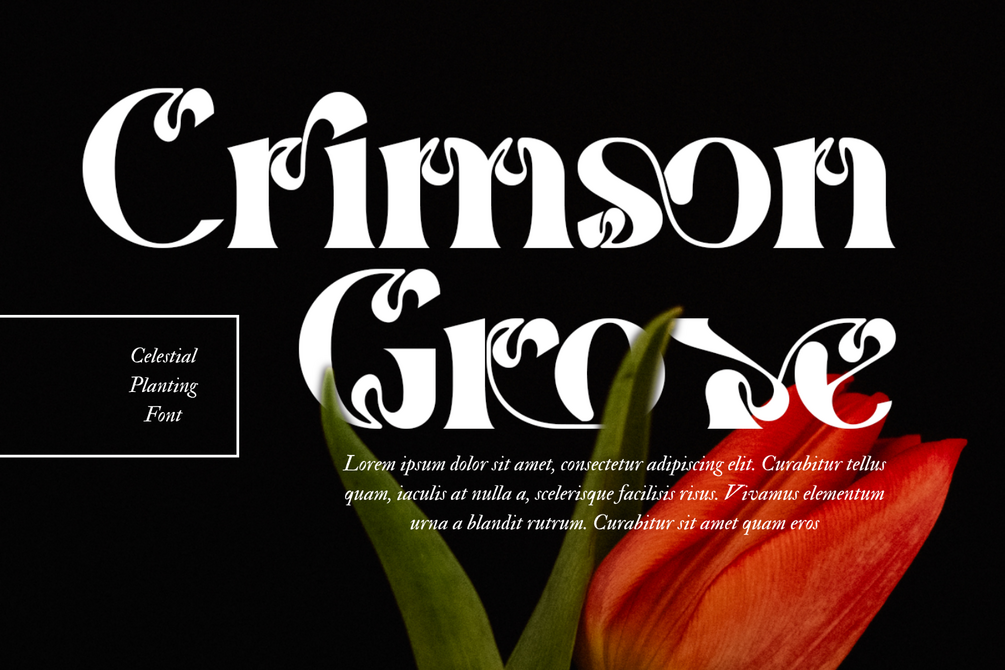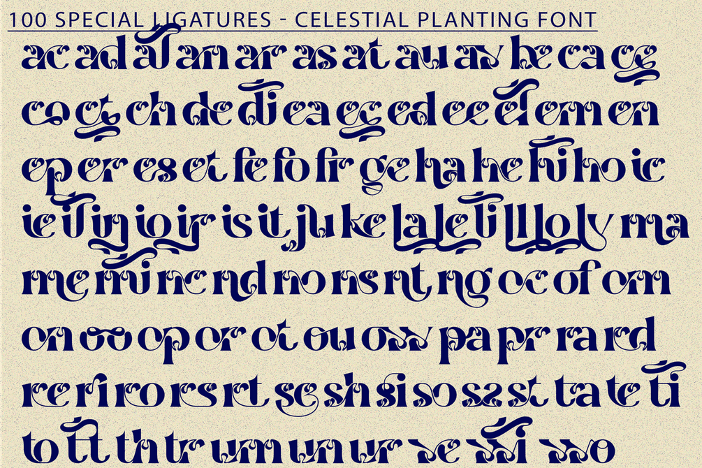Celestial Planting - Modern Serif Font - A Mystical Modern Psychedelic Serif, a captivating display serif that dances between vintage Art Nouveau elegance and bold psychedelic flair. Designed for creators who want their words to feel like art, this font brings a sense of fluid movement and organic beauty to any project. Celestial Planting is defined by its dramatic high contrast and rhythmic, swirling curves. It is the perfect choice for branding, ethereal poster designs, editorial headlines, and mystical packaging. Whether you are aiming for a "Celestial" aesthetic or a retro-revival look, this font adapts with effortless sophistication.