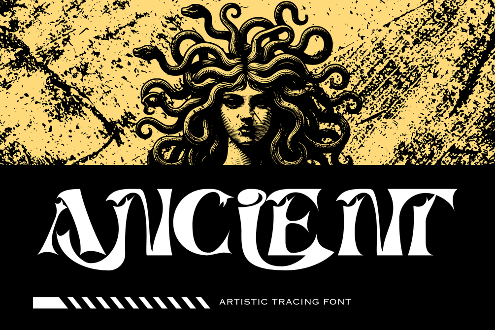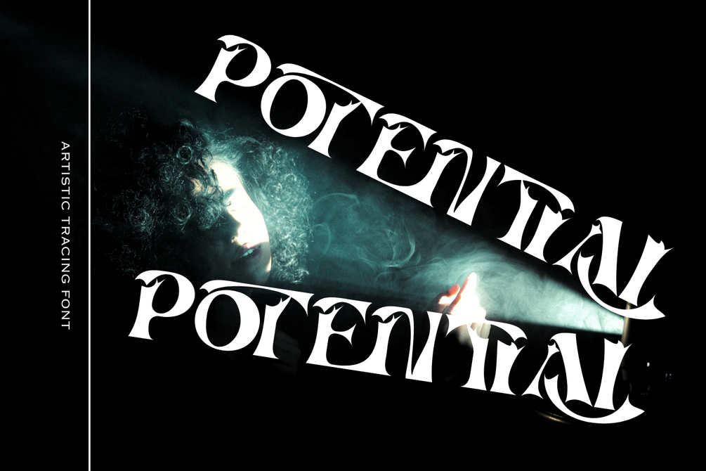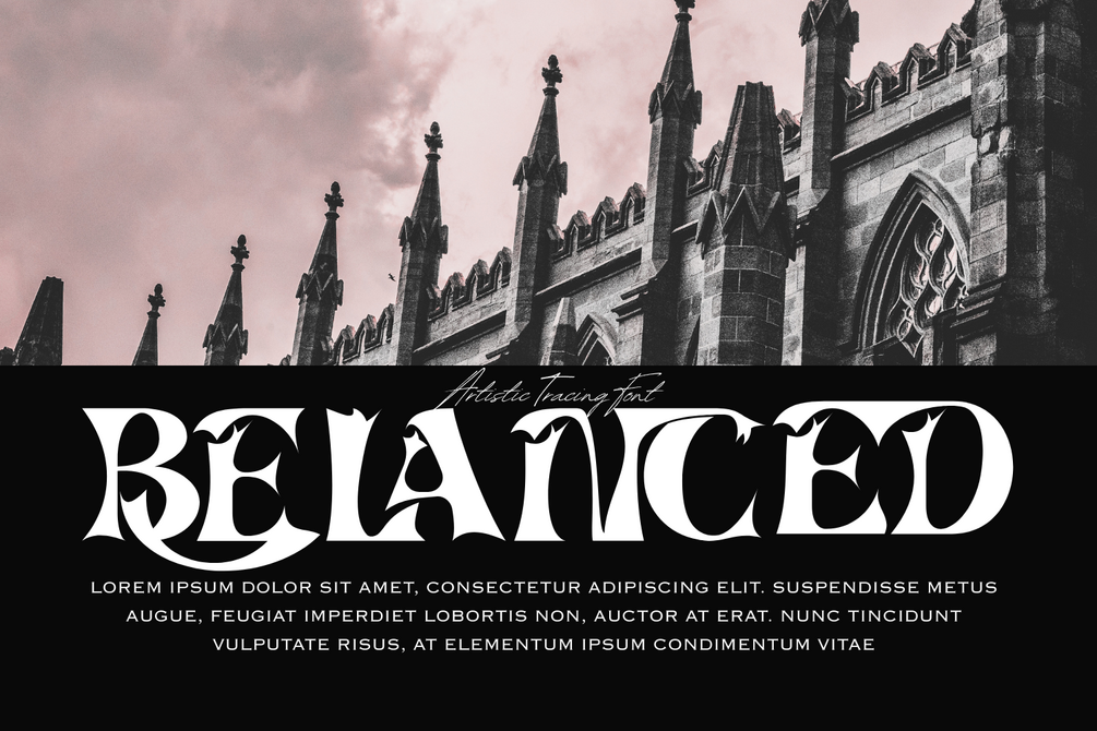 ARTISTIC TRACING - FANTASY FONT is a decorative gothic serif display typeface inspired by medieval lettering and dark fantasy aesthetics. Featuring dramatic high-contrast strokes, sharp claw-like serifs, and expressive ornamental ligatures, this font delivers a bold and mysterious visual presence. Including both Uppercase and Lowercase letters, approximately 100 custom special ligatures, complete Numerals & Punctuation, and extensive Accented characters, ARTISTIC TRACING allows designers to craft striking, fantasy-inspired typographic compositions. Its sharp details, flowing swashes, and powerful letterforms make it perfect for gaming, metal album covers, fantasy posters, gothic branding, and dramatic headline designs.