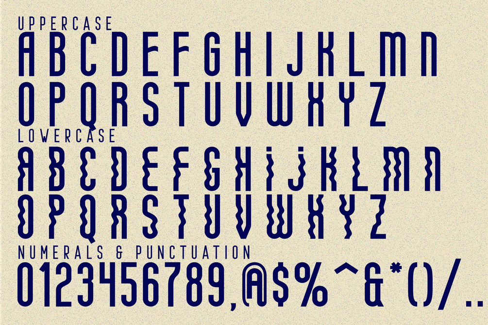 Theatrical Composition - Condensed Font, an Experimental Modern Display Font designed with bold geometric construction and distinctive wavy-line strokes. Its unique rhythm comes from the combination of rigid vertical lines and fluid wave-like curves, creating a striking visual texture that feels dynamic, theatrical, and unmistakably modern. Each letter is crafted with a strong sense of motion, making the font perfect for expressive headlines, posters, album covers, creative branding, and experimental typographic layouts. Theatrical Composition brings a fresh, artistic approach to display typography—balancing clean structure with playful distortion. The font captures attention instantly and injects personality into any project that seeks originality and bold visual impact.