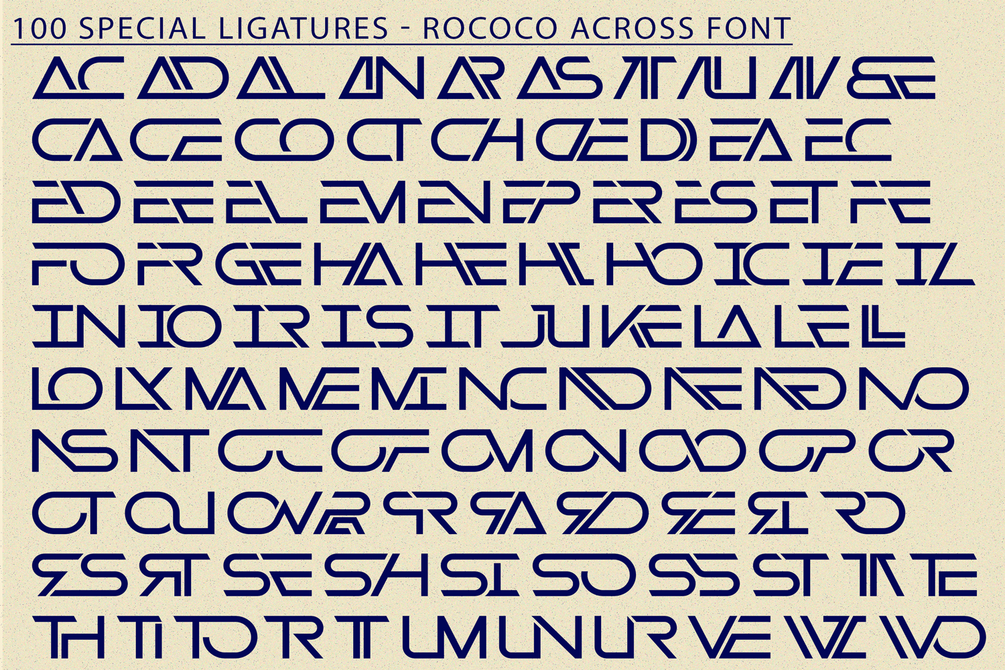 Rococo Across - Futuristic Font - A Futuristic Techno Display Font, a sleek futuristic display font that embodies innovation and modern aesthetics. With its geometric forms, sharp edges, and streamlined curves, this typeface conveys a sense of speed, technology, and digital sophistication. Perfectly suited for sci-fi posters, gaming titles, technology branding, digital interfaces, album covers, and modern advertising, Rococo Across delivers a bold visual identity that stands out with futuristic elegance.