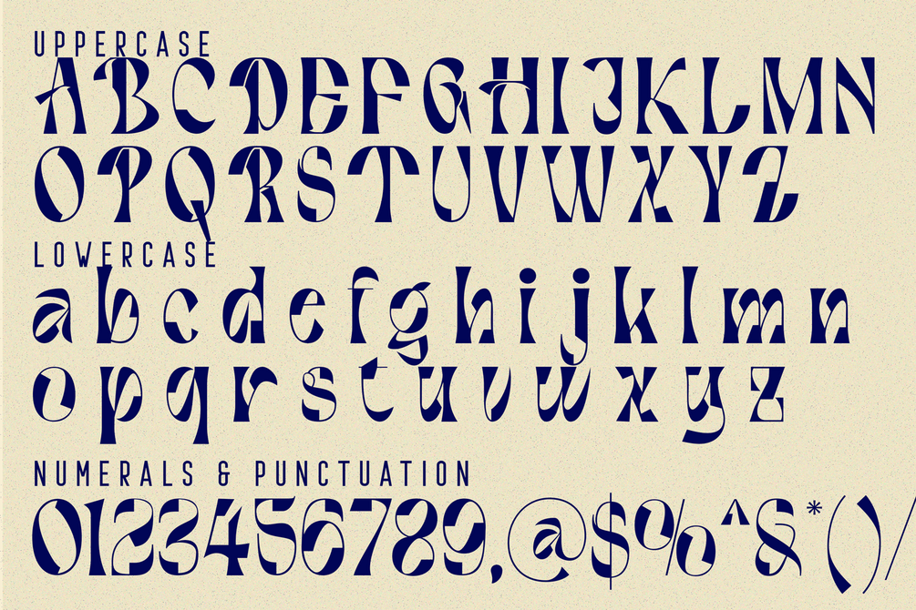 Abstract Reflections - Ligature Font – Experimental Abstract Serif Typeface, is an artistic and highly expressive serif display font that pushes the boundaries of traditional typography. With its dramatic contrast, abstract shapes, and fluid ligatures, this font is designed to make a bold visual statement in any creative project. The letterforms feature sharp cuts, unexpected angles, and swirling decorative strokes that give a handcrafted, sculptural feel—ideal for modern branding, editorial design, posters, album covers, or fashion-related visuals.