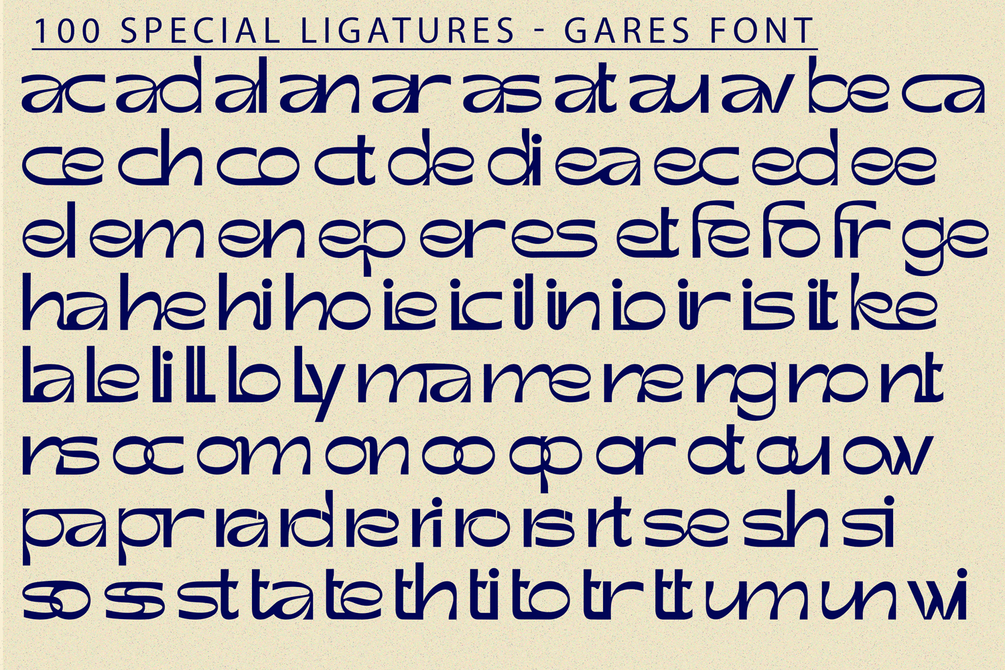Gares was built with OpenType features and includes 100 ligatures, alternate, numbers, punctuation, and it also supports other languages.