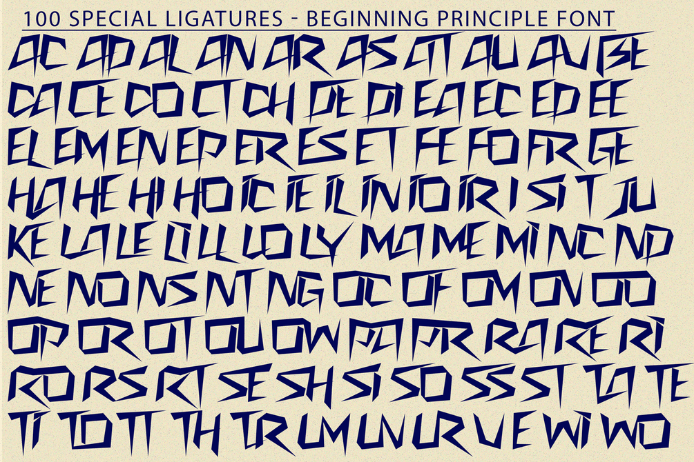 BEGINNING PRINCIPLE was built with OpenType features and includes 100 ligatures, alternate, numbers, punctuation, and it also supports other languages.