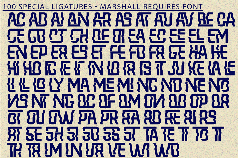 MARSHALL REQUIRES - FUTURISTIC FONT – Experimental Wavy Modular Display Font, an avant-garde display font that merges geometric solidity with fluid wave-like distortions. Each letter is crafted from bold modular structures that flow into unexpected organic curves, creating a distinctive rhythm and a striking visual personality. Its experimental design makes every word feel dynamic, modern, and artistically abstract. Perfect for posters, album artwork, editorial titles, branding concepts, fashion campaigns, and any creative project that demands a bold, unconventional typographic voice. MARSHALL REQUIRES delivers a futuristic, high-impact look that instantly captures attention.