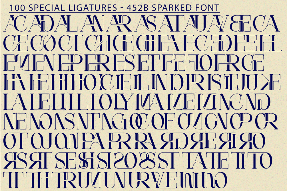 452B Sparked was built with OpenType features and includes 100 ligatures, alternate, numbers, punctuation, and it also supports other languages.
