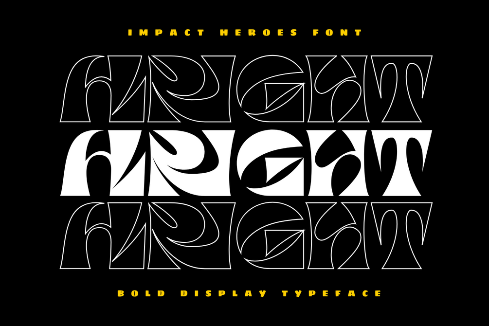 Impact Heroes Font - a strikingly distinctive retro display font, a daring and playful typeface crafted to elevate your imaginative endeavors. Embodying the retro charm of the psychedelic period. It's proves its potential in the realm of multilingual communication. With versatility at its core, This font shines when incorporated in branding, magazine layouts, typographical pieces, poster design, eye-catching thumbnails, and streetwear art.