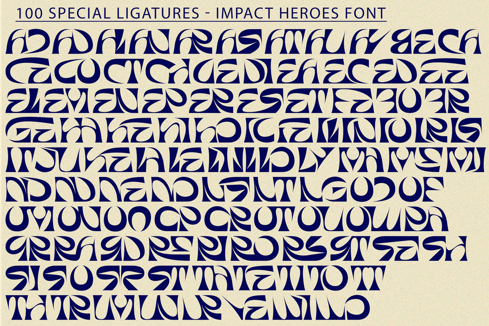Impact Heroes was built with OpenType features and includes 100 ligatures, alternate, numbers, punctuation, and it also supports other languages.