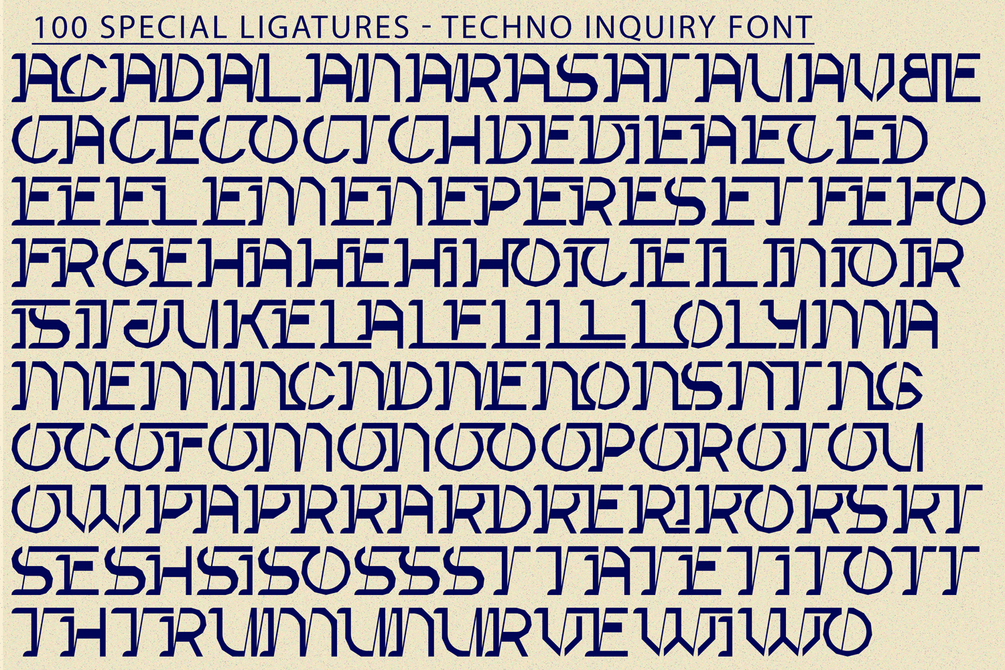 Techno Inquiry was built with OpenType features and includes 100 ligatures, alternate, numbers, punctuation, and it also supports other languages.