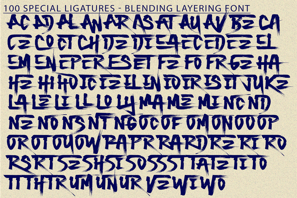 Blending Layering - Brush Font is an energetic brush display font that explodes with motion and raw expression. Each stroke feels hand-painted, giving the font a bold street-art attitude that’s perfect for projects needing intensity and personality. Its dynamic brush texture, combined with sharp edges and spontaneous movement, creates a feeling of speed and strength — ideal for poster headlines, music covers, sports branding, and urban design.