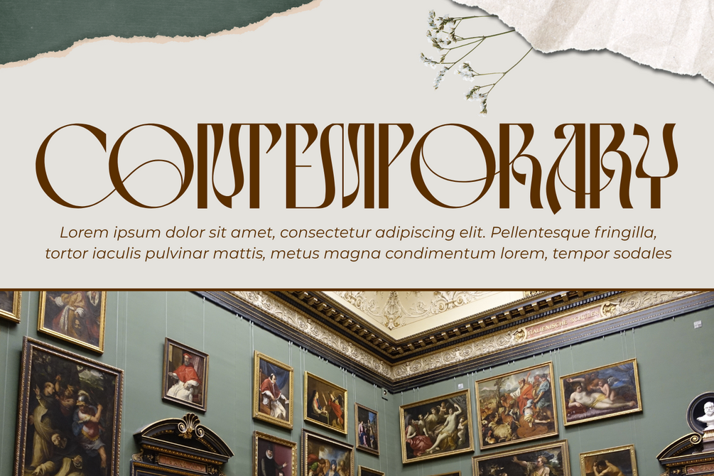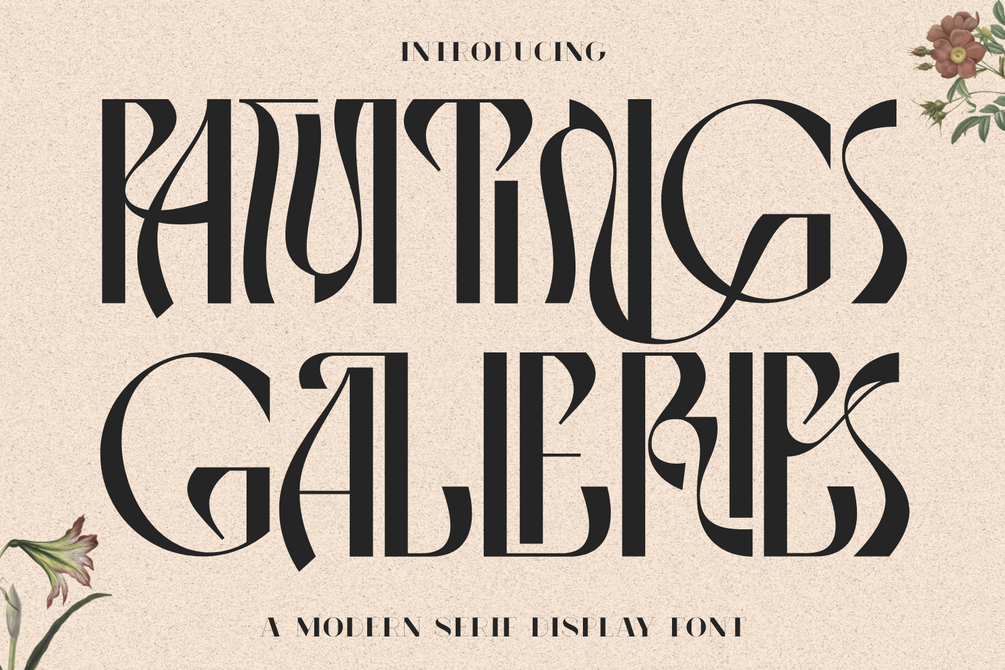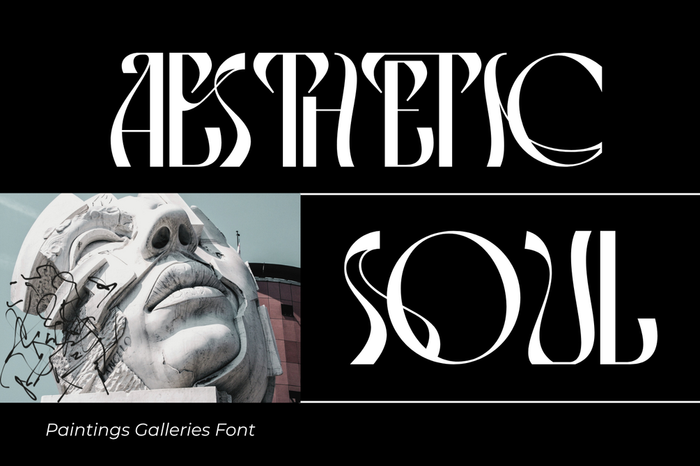 Paintings Galleries Font, a refined Art Deco-inspired display font that embodies sophistication and modern elegance. With its tall proportions, flowing curves, and geometric details, this font is designed to bring a timeless artistic flair to your creative projects. Perfect for luxury branding, editorial titles, posters, packaging, and visual identity design, Paintings Galleries combines classical aesthetics with a contemporary edge.