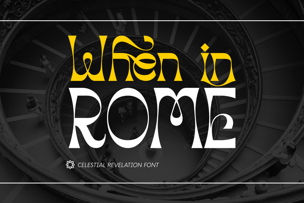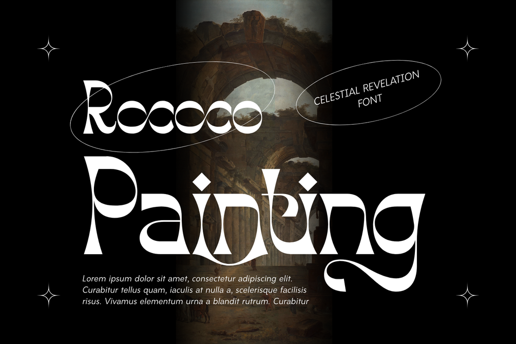 Celestial Revelation - Elegant Serif Font. This display serif font is a masterpiece of contrast, blending sharp, geometric precision with fluid, ethereal curves. Inspired by a fusion of Renaissance art and modern psychedelic aesthetics, Celestial Revelation is crafted to transform your typography into a high-fashion statement. The font's standout features are its razor-sharp terminals and unique diamond-shaped accents, offering a sophisticated look that is both bold and mysterious. It is an ideal choice for luxury branding, editorial layouts, jewelry packaging, and mystical-themed projects that require a touch of "divine" inspiration.