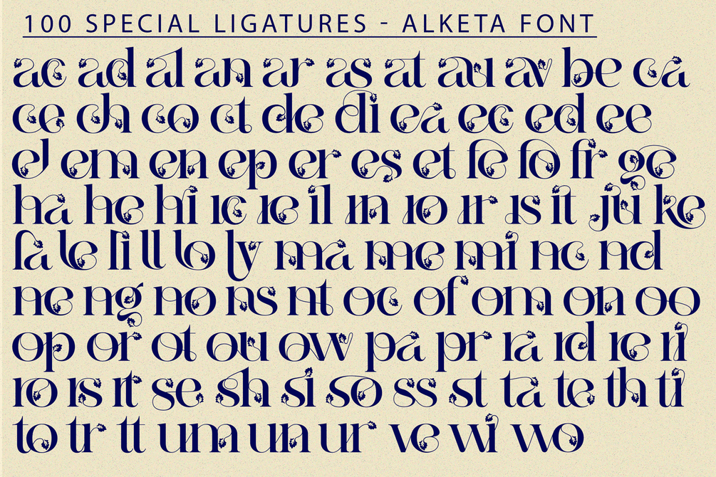 Alketa was built with OpenType features and includes 100 ligatures, alternate, numbers, punctuation, and it also supports other languages.