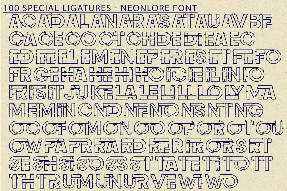 NEONLORE FONT – A Cyber Neon Display Font. Light up your designs with NEONLORE, a futuristic Cyber Neon Display Font inspired by neon lights and digital circuits. With its glowing letterforms and tech-inspired elements, this font is the perfect choice for nightlife branding, sci-fi posters, gaming projects, synthwave graphics, and futuristic UI designs.