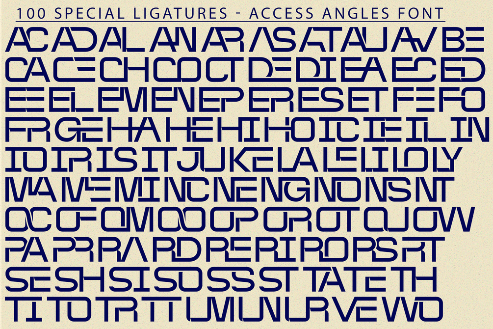 ACCESS ANGLES was built with OpenType features and includes 100 ligatures, alternate, numbers, punctuation, and it also supports other languages.