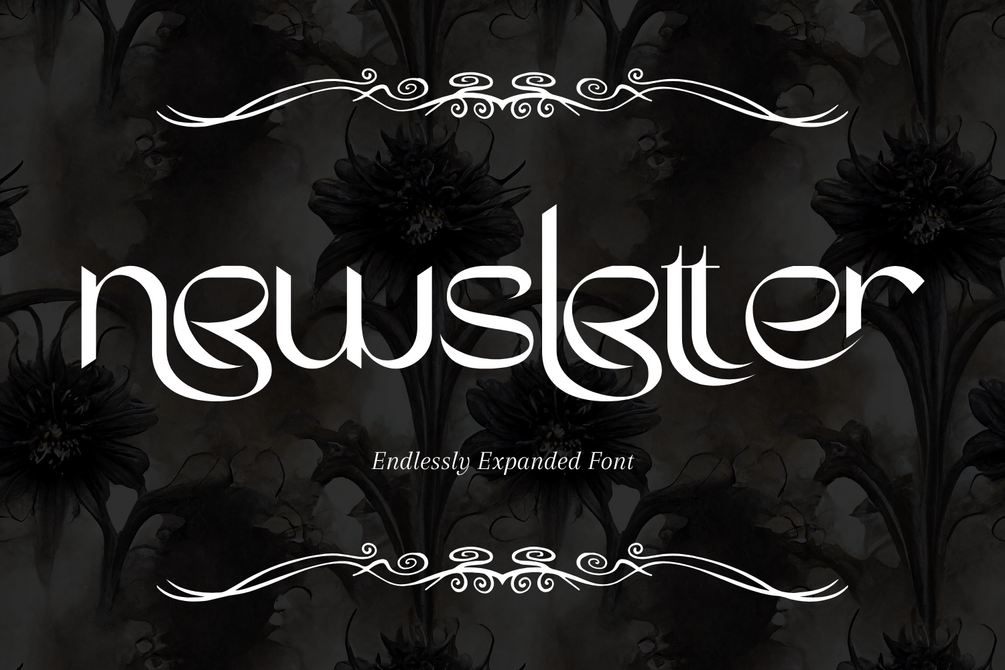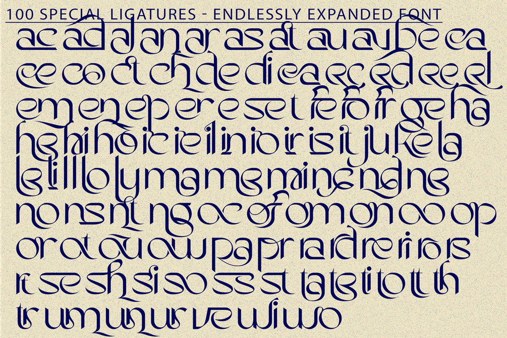 Endlessly Expanded - Ligature Sans Font – Elegant Ornamental Sans-Serif Display Font, an elegant ornamental serif display font crafted with high-contrast strokes, elongated letterforms, and beautifully flowing curves. Each character features sculpted terminals and graceful swashes, blending refined serif structure with expressive decorative flourishes. The font carries a luxurious, artistic rhythm—perfect for typography that needs to feel both sophisticated and imaginative. Ideal for branding, book covers, fashion editorials, posters, packaging, invitations, and any creative project that demands a striking blend of elegance and artistry, Endlessly Expanded offers a timeless statement in every composition.