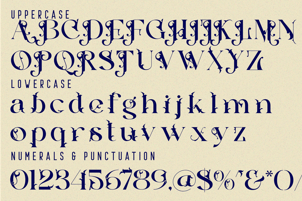 Classical Blending - Gothic Font – A Baroque-Modern Display Serif Font, a bold and artistic serif font that merges the elegance of classical typography with the mystique of baroque fantasy. Its sweeping terminals, sharp spurs, and ornamental ligatures form a visual rhythm that evokes drama, mythology, and avant-garde aesthetics. Each character is meticulously designed to blend gothic sensuality with modern typographic precision — a perfect balance between tradition and rebellion.