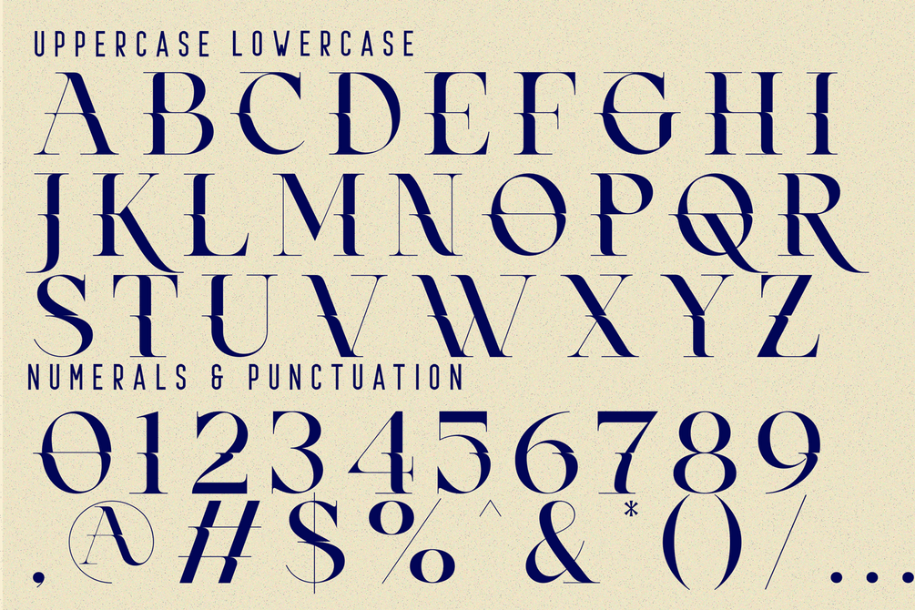Across Sensory Modern Serif Font – is a sophisticated modern serif typeface that blends high fashion elegance with artistic flair. Its high-contrast strokes, refined serifs, and sweeping swashes create a sense of movement and luxury, while unique star-shaped details inside letterforms add a distinctive, celestial charm. This font is designed for those who want their typography to shine—perfect for branding, editorial titles, luxury packaging, wedding invitations, and creative display designs. With over 100 custom ligatures, Across Sensory allows for seamless and artistic letter connections, making your text look handcrafted and uniquely yours.