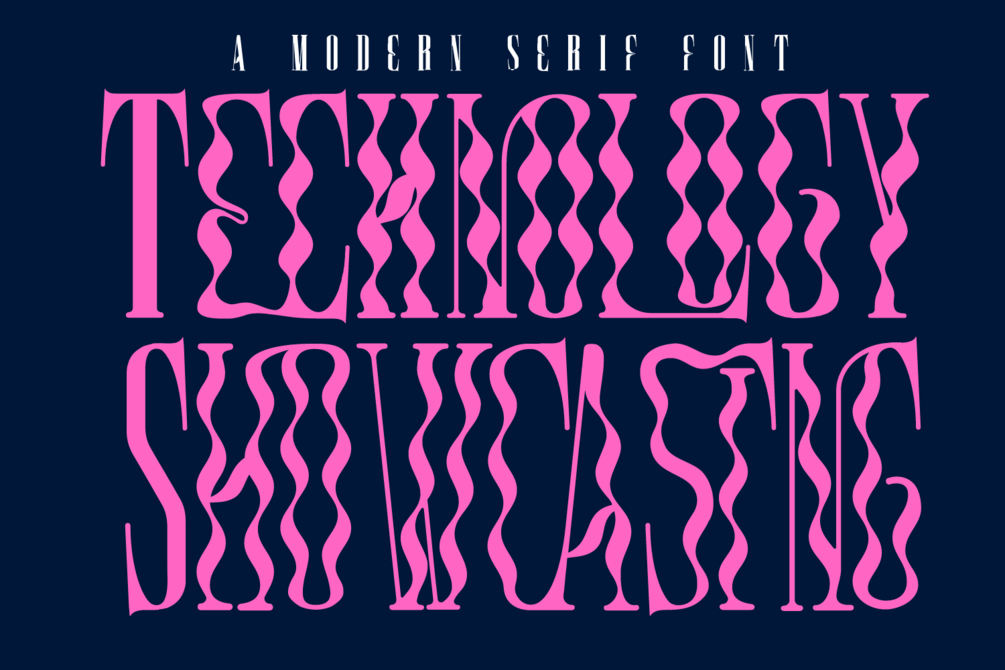 Technology Showcasing Font is a condensed font, wavy display face. it was designed with a synthesis of the future and the past. While it carries sharper and futuristic lines than the future, it also incorporates the organic structure of the past. A type piece we loved, originally inspired by Brutalist Architecture. It featured some very interesting glyphs, mainly super narrow and with extra deep inktraps. It's a massive font that will grab the attention. It's gonna look great on a magazine spread, cover or a poster in large print.