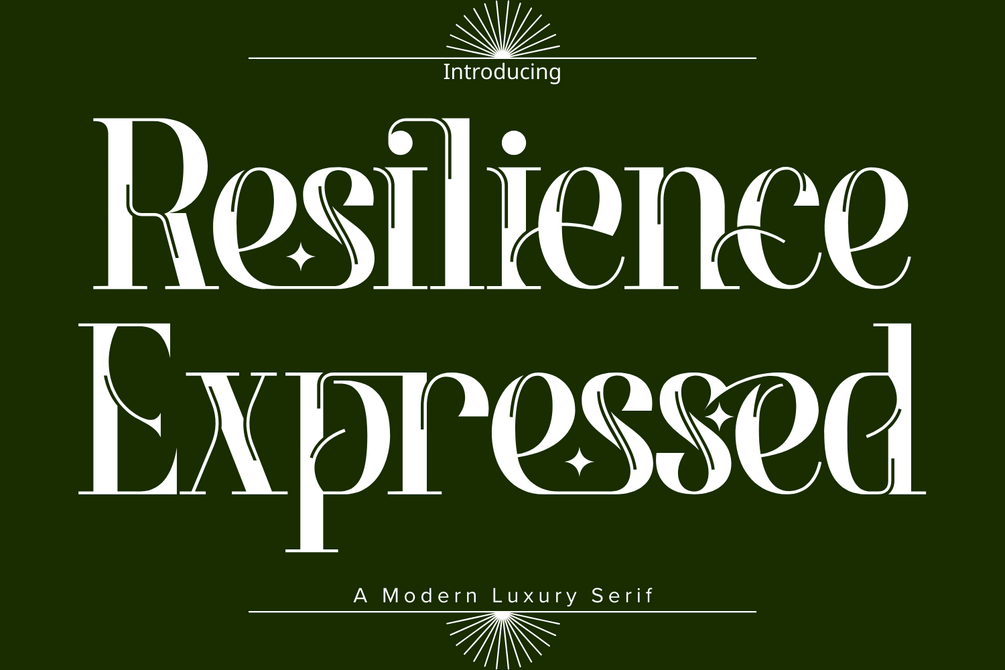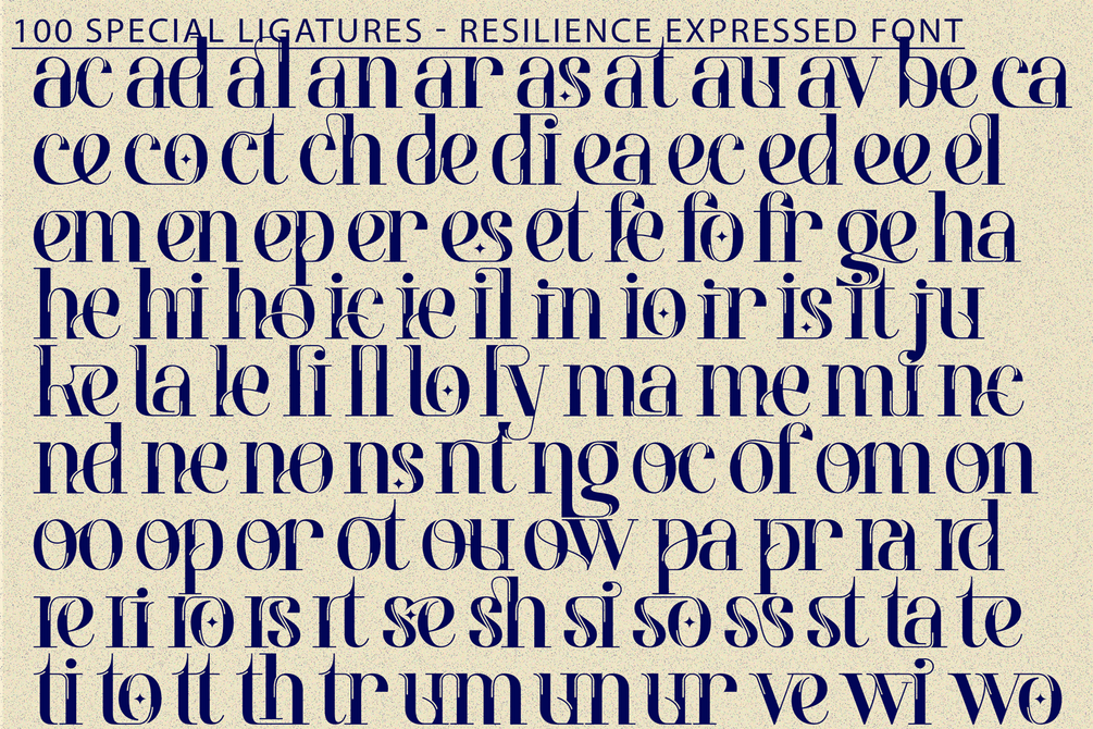 Resilience Expressed Font – Elegant Modern Serif Display Font, an elegant modern serif display font crafted with a refined, expressive character and a strong sense of sophistication. This typeface blends classic serif foundations with contemporary proportions, featuring high contrast strokes, graceful curves, and decorative details that add a subtle sense of luxury and charm. Resilience Expressed stands out with its artistic terminals, soft flourishes, and carefully designed ligatures that bring a distinctive rhythm to typography. The font feels both timeless and modern, making it perfect for high-end branding, editorial design, fashion magazines, packaging, logos, invitations, and premium visual identities.