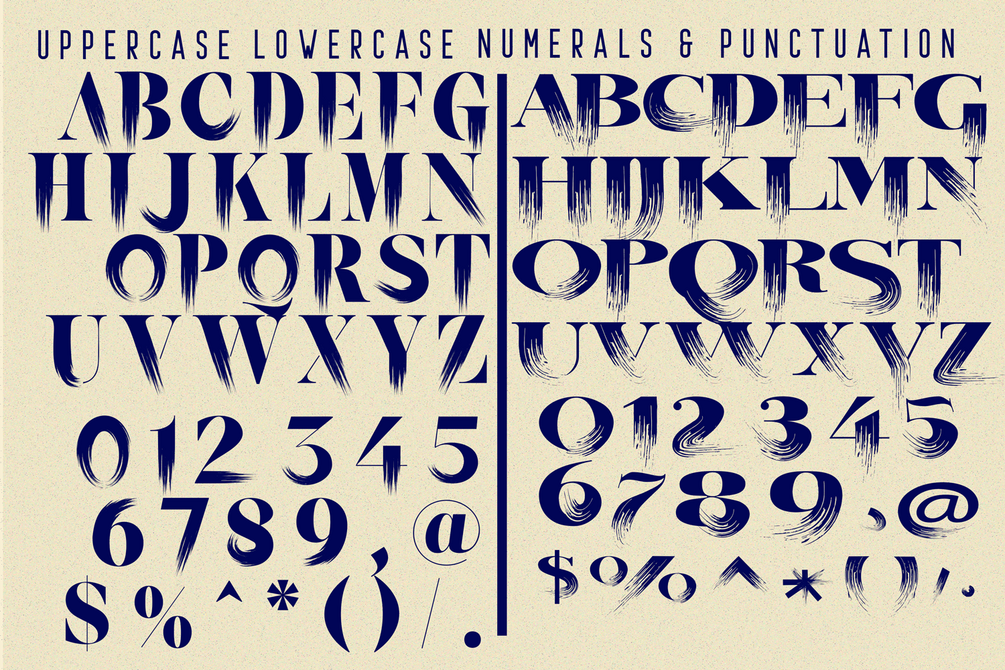 Drama Genre Serif Brush Font is entirely hand-painted serif. A raw, bold, condensed font, with brushy imperfections and an earthy realism. With its detailed brushmarks it is designed to go big and bold. This font is an uppercase font and it offers alternate glyphs as lowercases. Enjoy the natural texture font which makes an eye catching statement - perfect for use in posters, headlines, advertisements & other bold typographic pieces.