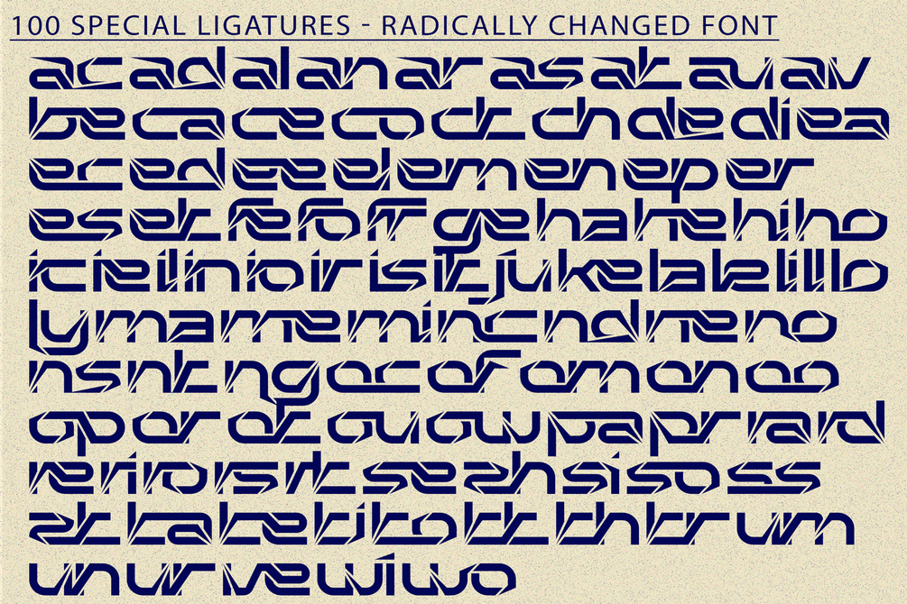 Radically Changed - Futuristic Font – Futuristic Geometric Sans-Serif Display Font, a bold futuristic sans-serif display font inspired by sharp geometry, digital aesthetics, and sci-fi design language. The letterforms feature angular cuts, dynamic diagonals, and distinctive split strokes that create a strong sense of motion, technology, and innovation. Each character is carefully constructed with precise edges and mechanical balance, giving the font a powerful and modern presence. Radically Changed is perfect for technology branding, sci-fi posters, gaming titles, cyberpunk visuals, esports logos, UI headers, futuristic packaging, and experimental editorial design. Its aggressive yet clean structure makes it ideal for headlines and display use where impact and originality are essential.