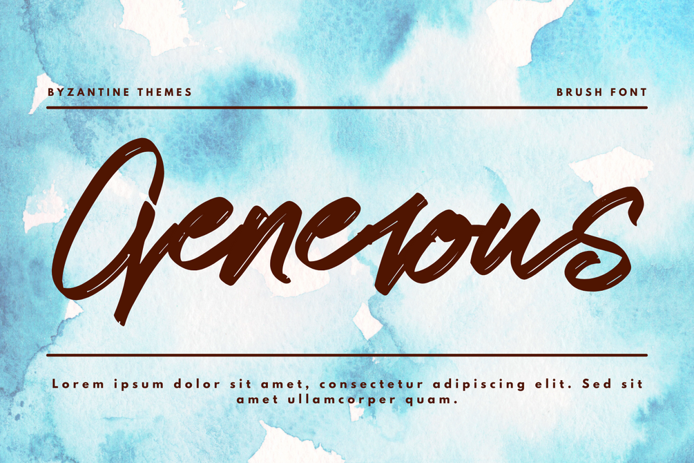 Byzantine Themes Brush Font is a beautiful brush signature font. A contemporary approach to design, with naturally handmade and underscores and also has alternatives & ligatures that make your design more attractive. Suitable for use in title design. Such as clothing, invitations, tittle books, stationery designs, quotes, branding, logos, greeting cards, t-shirts, packaging designs, posters and more.