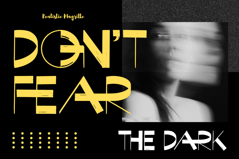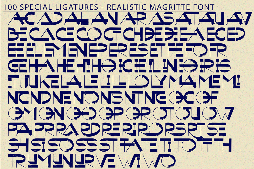 Realistic Magritte Brush Font – Distressed Geometric Display Typeface, is a striking geometric display typeface infused with an expressive distressed texture. Its bold, angular letterforms are inspired by modernist geometry, while the rough, hand-crafted grunge details add an organic and rebellious edge. The result is a perfect balance between structure and imperfection — ideal for projects that demand a unique, eye-catching identity. Whether you're designing a movie poster, an album cover, an urban fashion brand, or experimental artwork, Realistic Magritte brings a raw yet refined aesthetic that stands out in any creative context.
