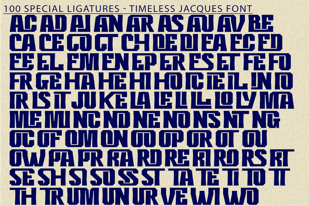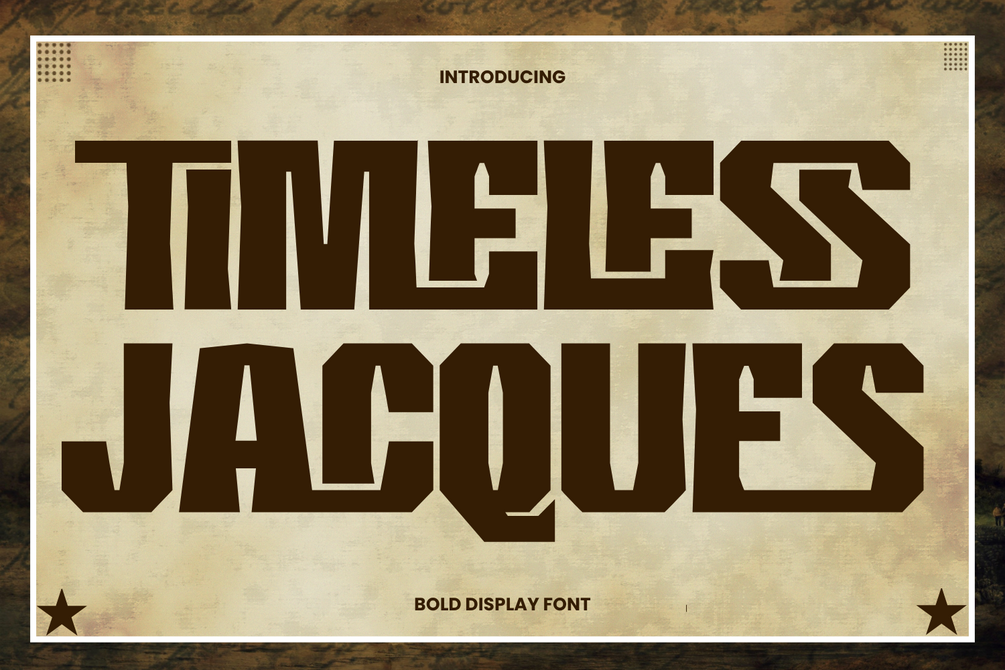TIMELESS JACQUES - RETRO FUTURISTIC FONT, a powerful Geometric Sans-Serif Display Font that captures both the strength of industrial design and the timeless appeal of vintage typography. With its thick strokes, angular shapes, and distinctive character cuts, this font brings a bold, confident tone to any creative project.