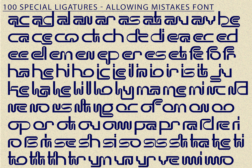Allowing Mistakes - Futuristic Font is a modern futuristic sans serif typeface designed with smooth rounded geometry and clean digital forms. Inspired by technology, innovation, and contemporary interface design, this font delivers a sleek and forward-thinking visual identity. Featuring both Uppercase and Lowercase letters, approximately 100 custom special ligatures, complete Numerals & Punctuation, and extensive Accented characters, Allowing Mistakes allows designers to create unique, connected typographic compositions. Its consistent stroke weight, rounded terminals, and creative ligature system make it ideal for tech branding, AI projects, startups, sci-fi posters, gaming titles, and modern UI-focused designs.