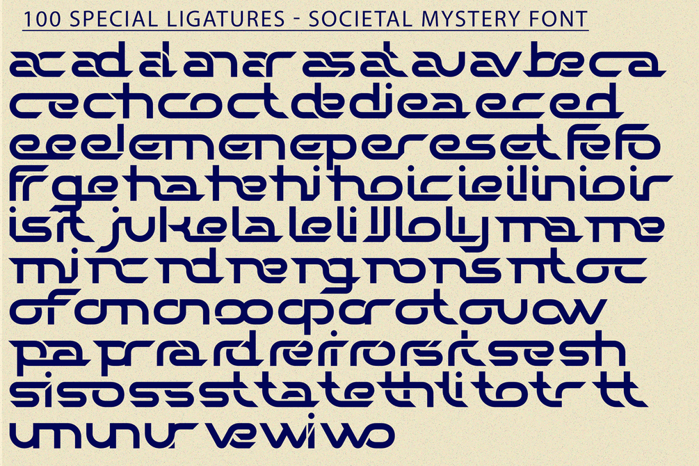 Societal Mystery was built with OpenType features and includes 100 ligatures, alternate, numbers, punctuation, and it also supports other languages.