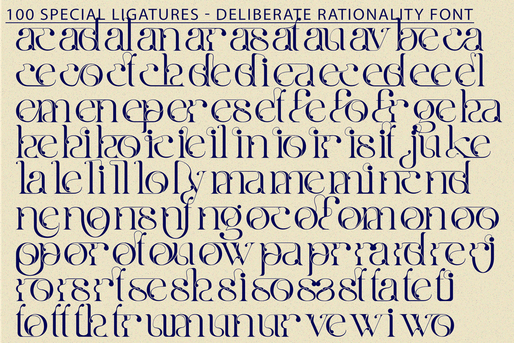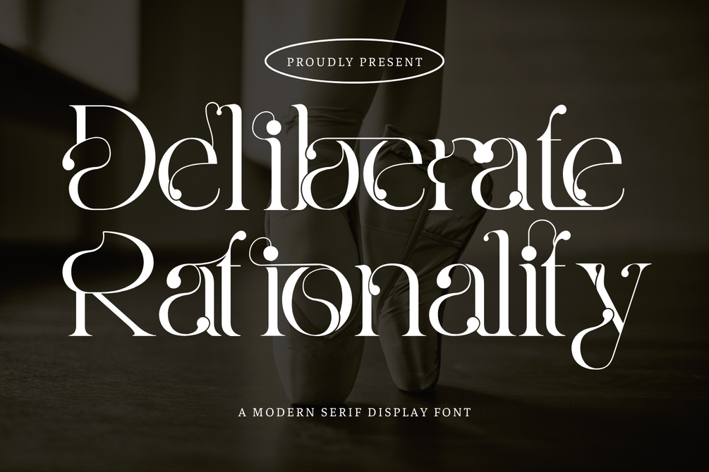 Introducing Deliberate Rationality - Modern Serif Font: A Unique & Artistic Modern Serif Display Font, a stunning Modern Serif Display font designed for those who dare to be different. This font masterfully combines the timeless elegance of serif typefaces with bold, contemporary artistry. Featuring high-contrast strokes and intricately decorated letterforms with unique flourishes and terminals, Deliberate Rationality is crafted to make a statement. Ideal for high-impact headlines, sophisticated logos, fashion branding, editorial design, artistic posters, and any project demanding a touch of unique elegance and creative flair.