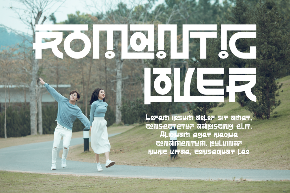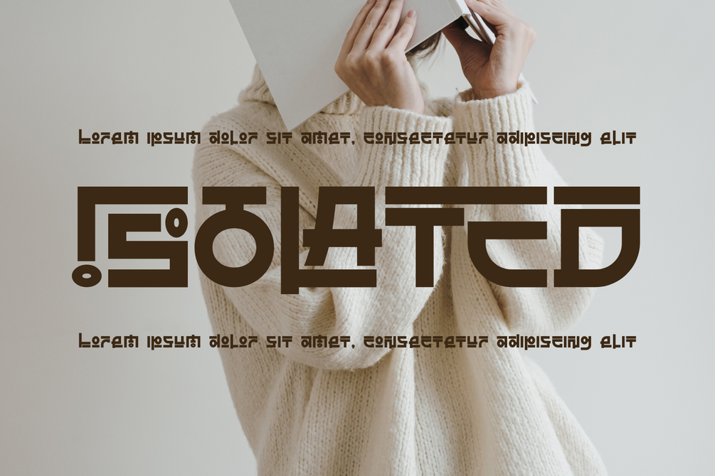 RADICAL EMPATHY FONT – Bold Futuristic Geometric Display Font, a bold futuristic geometric display font inspired by modern architecture, sci-fi aesthetics, and Asian industrial typography. The font features strong blocky letterforms, sharp angles, squared terminals, and distinctive cut-out details that create a powerful, mechanical, and highly structured appearance. Its solid construction and modular design deliver excellent visual impact, making the font stand out instantly in headlines and large-scale compositions. RADICAL EMPATHY is designed for high readability while maintaining a striking futuristic character, perfect for posters, branding, technology projects, game titles, logos, packaging, apparel, and modern editorial designs.