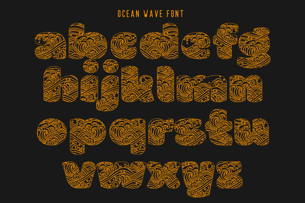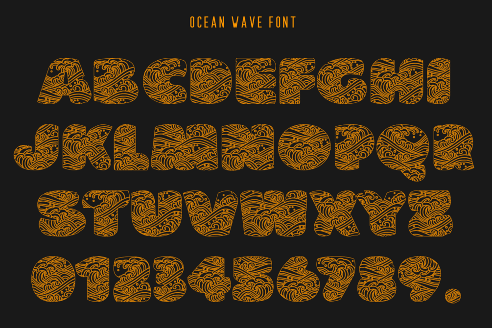 OCEAN WAVE Font is an upper and lowercase decorative font. Inspired by the waves on a painting The Great Wave off Kanagawa. It is Hokusai's most famous work and is often considered the most recognizable work of Japanese art in the world.