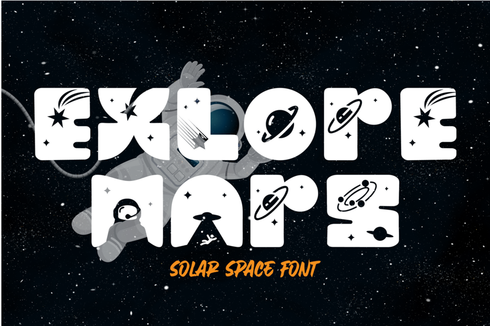 Solar Space Font is a futuristic scifi display font. It's a futuristic font with alternate letters. This font which helping to create futuristic hi-tech atmosphere and style. Wide and rounded typeface design with a modern minimalist approach. Perfect usage includes logo, poster, display, headline, t-shirt design and many more.
