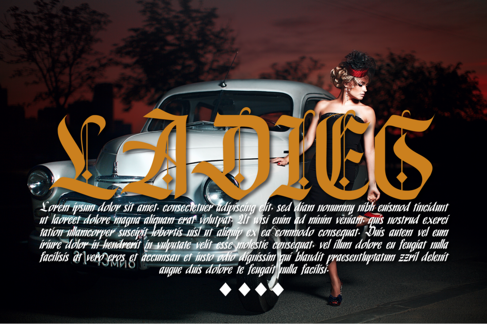 POWER BLACKLETTER Font is a bold and daring blackletter font that exudes a sense of strength and power. The font combines elements of both modern sans-serif and blackletter styles, creating a striking and distinctive appearance. It's a font that combines blackletter style with calligraphy. It is suitable for vintage, metal, tattoo, and modern designs because it blends traditional and modern elements.