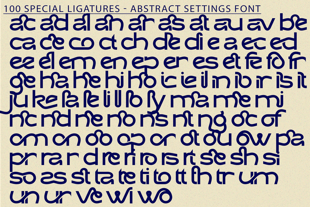Abstract Settings - Futuristic Font - A Futuristic Abstract Sans Display Font, is a forward-thinking abstract sans serif display font designed for modern creatives who dare to break conventions. With its fluid letterforms, asymmetric shapes, and experimental construction, this font brings a futuristic and tech-inspired aesthetic to any project. Perfect for digital artwork, technology branding, music covers, sci-fi posters, and editorial design, Abstract Settings delivers a unique blend of clean structure and abstract flair. Its unconventional curves and sharp angles create a visual rhythm that feels both dynamic and contemporary.