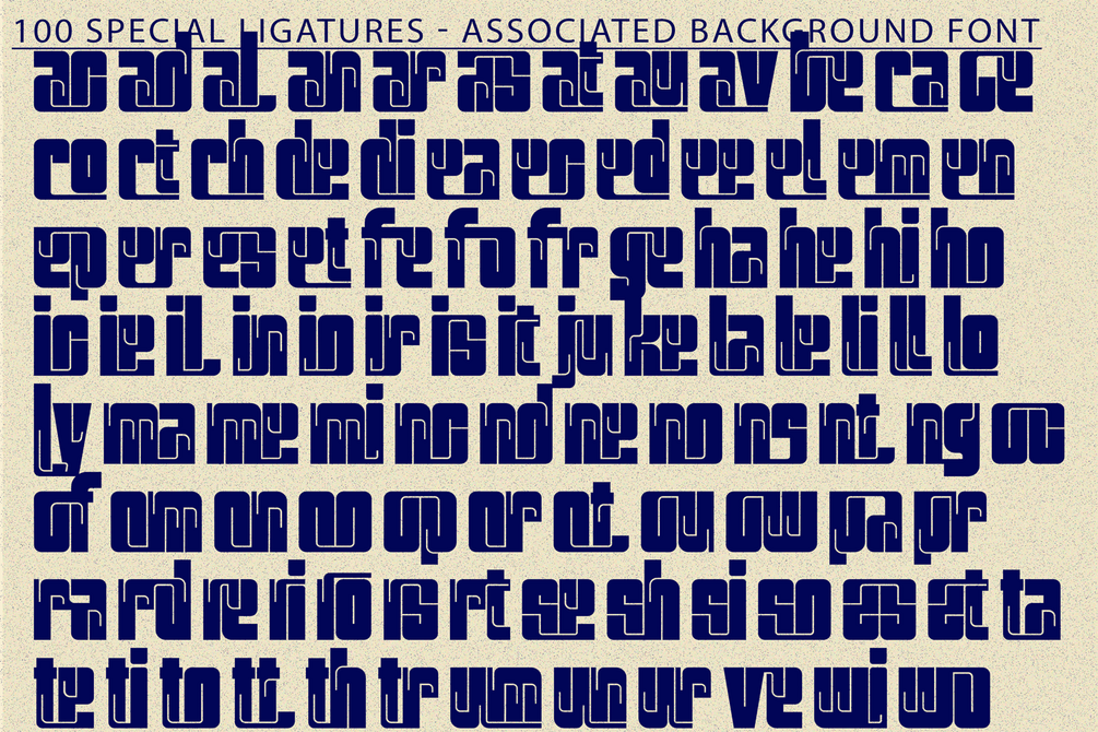 Associated Background - Geometric Font is a bold geometric display typeface designed with strong modular forms and distinctive retro-futuristic character. Built from powerful shapes with softly rounded corners, this font delivers an expressive and highly recognizable visual identity. Featuring both Uppercase and Lowercase letters, approximately 100 custom special ligatures, full Numerals & Punctuation, and extensive Accented characters, Associated Background allows designers to craft striking wordmarks and headline compositions. Its ultra-bold weight, connected letterforms, and experimental ligature system make it perfect for logos, posters, branding, album covers, and statement-driven designs that demand attention.