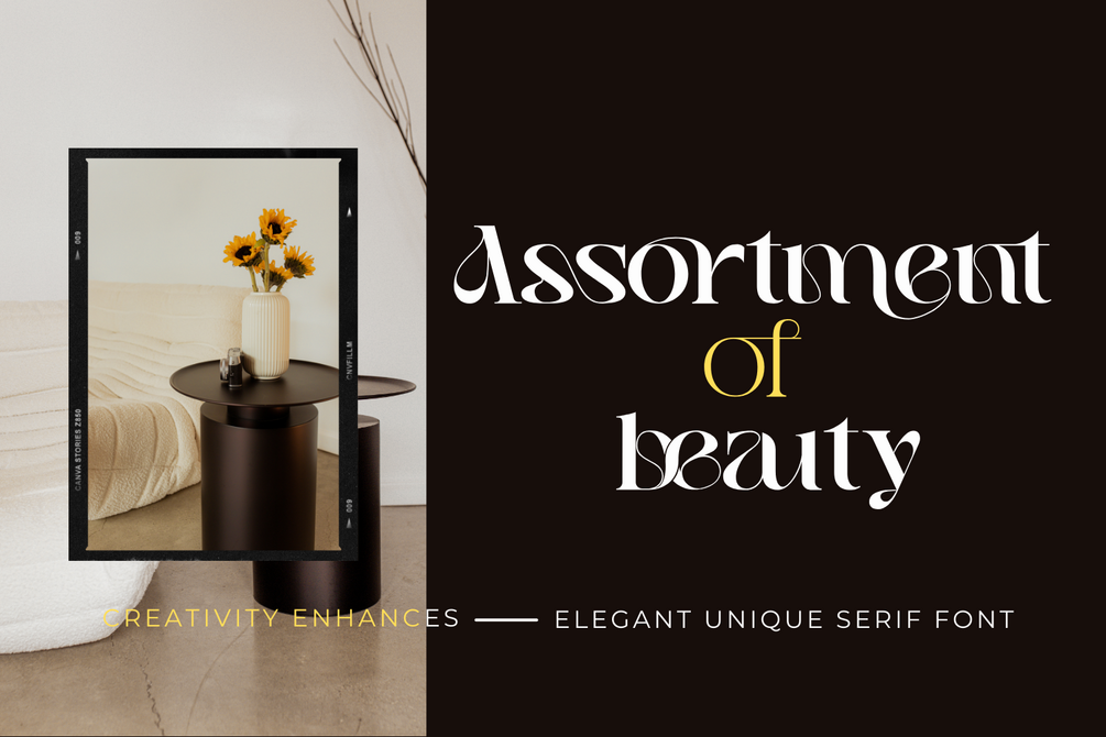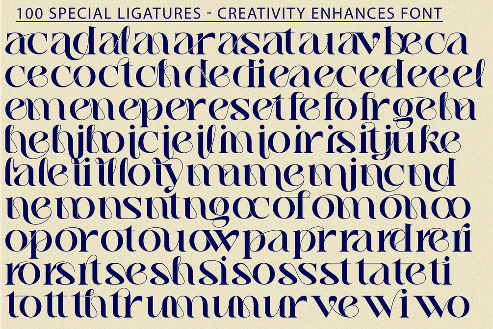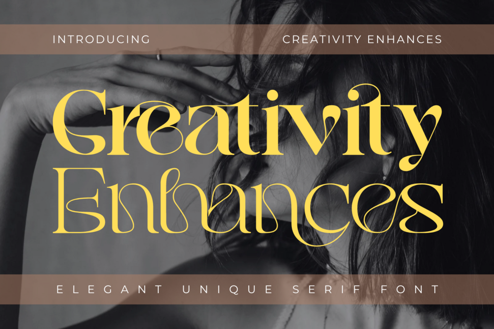 Creativity Enhances Font is a modern, elegant, and classy serif typeface, it's comes with clean lines and smooth curves that give any project an extra touch of class. This elegant typeface features a variety of ligatures, adding a touch of sophistication to any design. Perfect for creating captivating headlines, branding, and editorial pieces,.