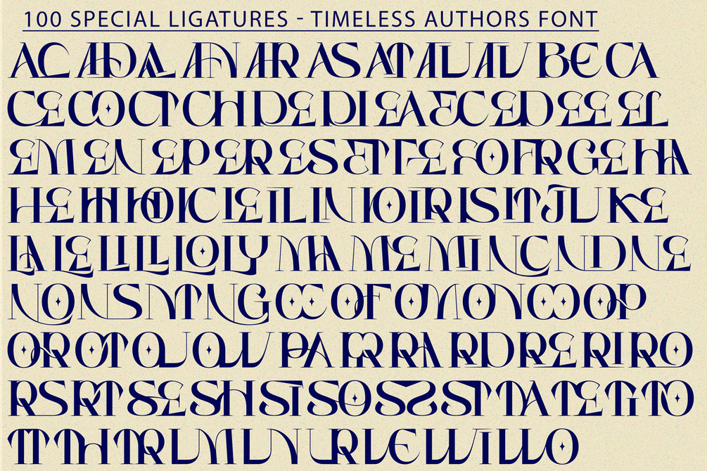 Timeless Authors was built with OpenType features and includes 100 ligatures, alternate, numbers, punctuation, and it also supports other languages.