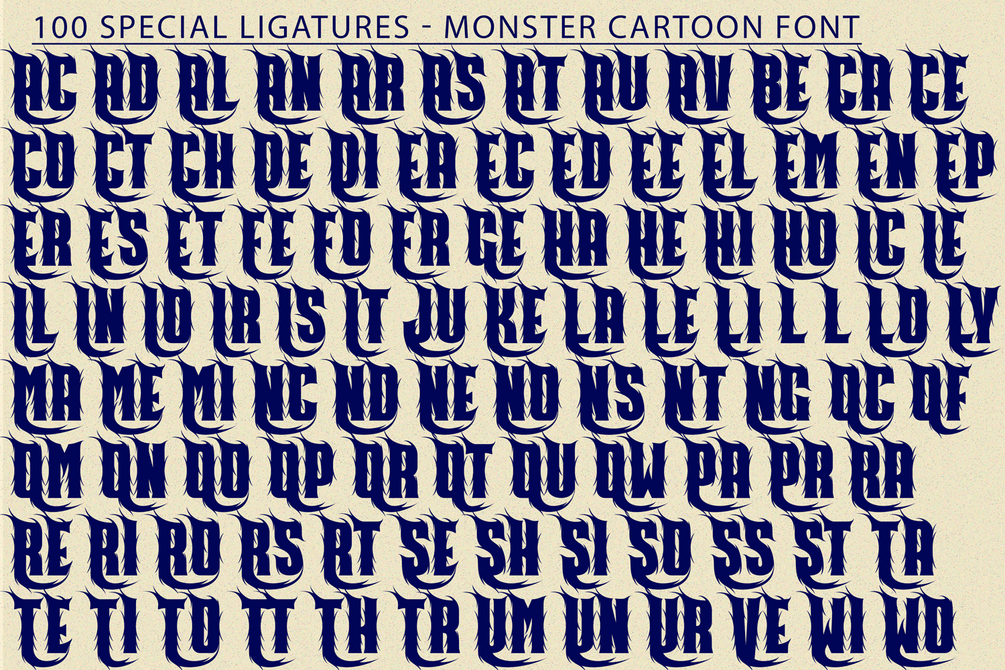 Monster Cartoon was built with OpenType features and includes 100 ligatures, alternate, numbers, punctuation, and it also supports other languages.