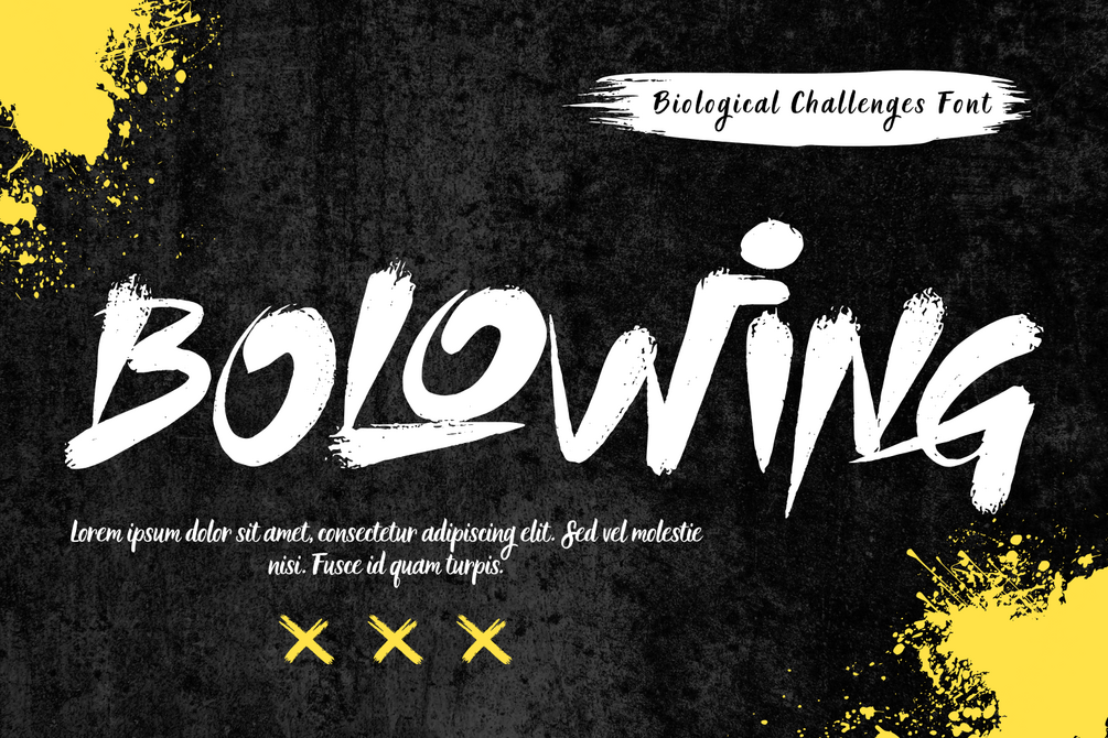 Biological Challenges - Brush Font – Bold Brush Script Font, a bold and expressive brush script font inspired by raw hand-painted lettering and energetic brush strokes. Designed with rough textures, sharp edges, and dynamic letterforms, this font delivers a powerful visual impact full of movement and emotion. The natural brush flow and irregular strokes create an authentic handwritten feel, while carefully crafted ligatures enhance smooth connections and expressive typography. Every character feels alive, making your designs stand out with confidence and attitude.