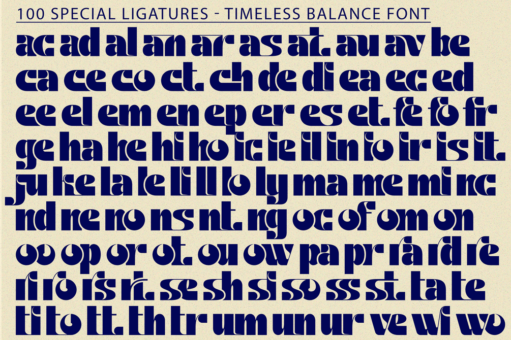 Timeless Balance was built with OpenType features and includes 100 ligatures, alternate, numbers, punctuation, and it also supports other languages.
