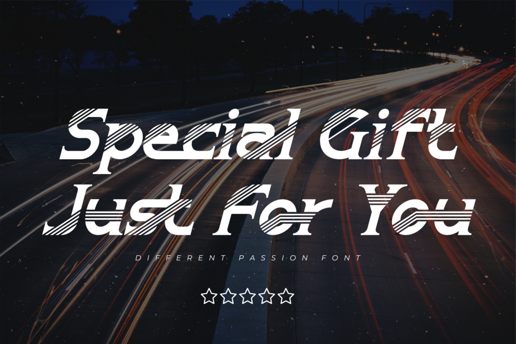 Different Passion - Striped Font - Eye-catching lines font designed to captivate with its bold, geometric clean lines. The font design consists of parallel lines that create a sense of movement and depth, making it ideal for projects that demand attention and contemporary aesthetics. Perfectly suited for creating impactful headlines, posters, logos, and branding materials, this font offers a unique blend of sophistication and creativity.