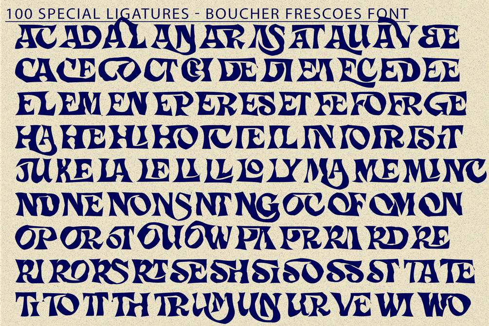 BOUCHER FRESCOES - HORROR FONT, a bold Psychedelic Serif Display font inspired by retro art and vintage music poster aesthetics. With its free-flowing letterforms, irregular shapes, and decorative energy, this font captures the expressive spirit of the ’70s while staying relevant for modern creative projects. Perfect for music branding, editorial headlines, retro posters, packaging, and artistic visuals, BOUCHER FRESCOES brings personality and movement to every composition.
