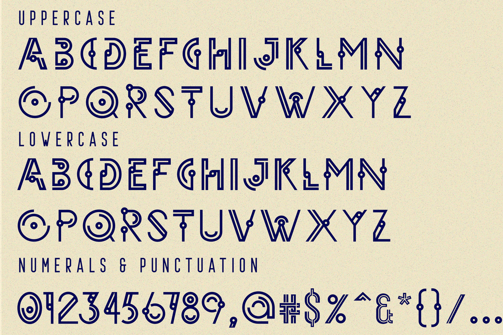 CENTERS SECTION Font is a modernized geometric typeface inspired by the cosmos. It was inspired by art deco, a style of visual arts, architecture and design that first appeared in France. It is a geometric stylish font full of alternate letters & ligatures - check out the slides above and see them all for yourself. It's a display font that is suitable on your headline to your magazine, flyer, poster or neon installation. Also clearly shaped to be applied in print design like t-shirt, mug, banner or motion graphic.