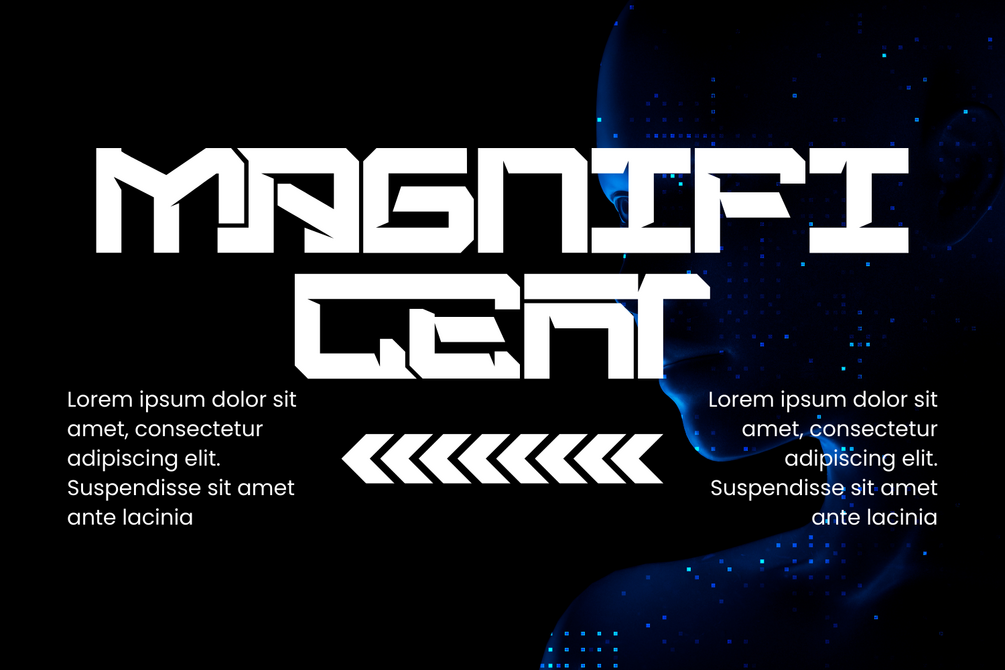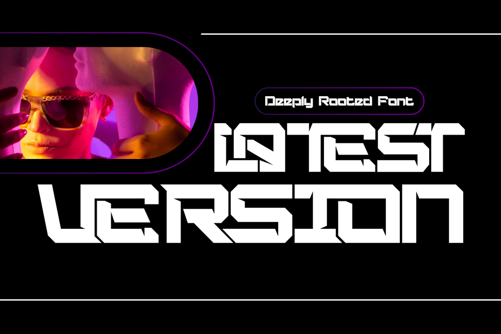 DEEPLY ROOTED - FUTURISTIC FONT is a bold futuristic geometric display sans serif typeface inspired by sci-fi aesthetics, industrial design, and modern technology branding. Built with strong block shapes, sharp angled cuts, and modular construction, this font delivers a powerful and mechanical visual identity. Featuring both Uppercase and Lowercase letters, approximately 100 custom special ligatures, complete Numerals & Punctuation, and extensive Accented characters, DEEPLY ROOTED allows designers to create striking, connected wordmarks and high-impact headline compositions. Its geometric structure, solid proportions, and technical ligature system make