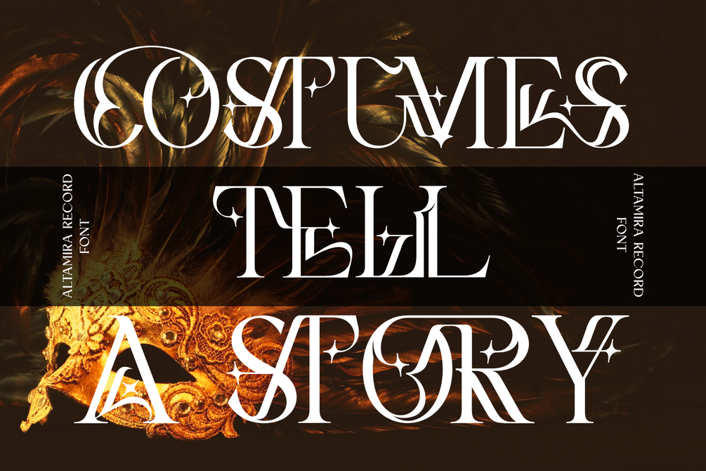 ALTAMIRA RECORD - BAROQUE FONT is a luxurious decorative serif typeface inspired by Baroque and Rococo artistry. It features elegant high-contrast letterforms with ornate strokes, pointed terminals, and star-shaped internal cutouts that add a sparkling, sophisticated touch. The font combines classic serif structure with ornamental detailing, giving it a regal and theatrical aesthetic. Its tall proportions and curved intersections create a sense of refinement and motion, perfect for designs that require elegance and visual impact — such as album covers, high-fashion branding, editorial headlines, or luxury packaging.