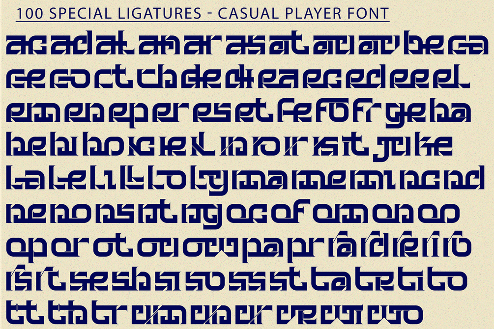 Casual Player was built with OpenType features and includes 100 ligatures, alternate, numbers, punctuation, and it also supports other languages.