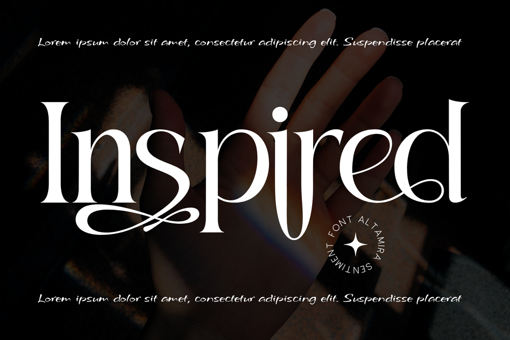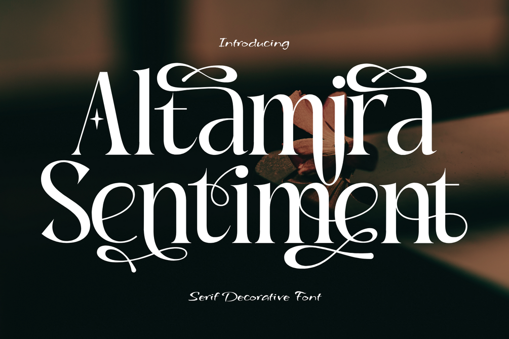 Altamira Sentiment - Elegant Serif Font is a luxurious serif display font that blends classic sophistication with modern flair. Each letterform is crafted with refined curves, elegant contrast, and delicate decorative swashes that bring a sense of romance and artistry to your typography. The design combines sharp serifs with graceful flourishes, evoking timeless beauty and expressive emotion — ideal for projects that require both charm and class.